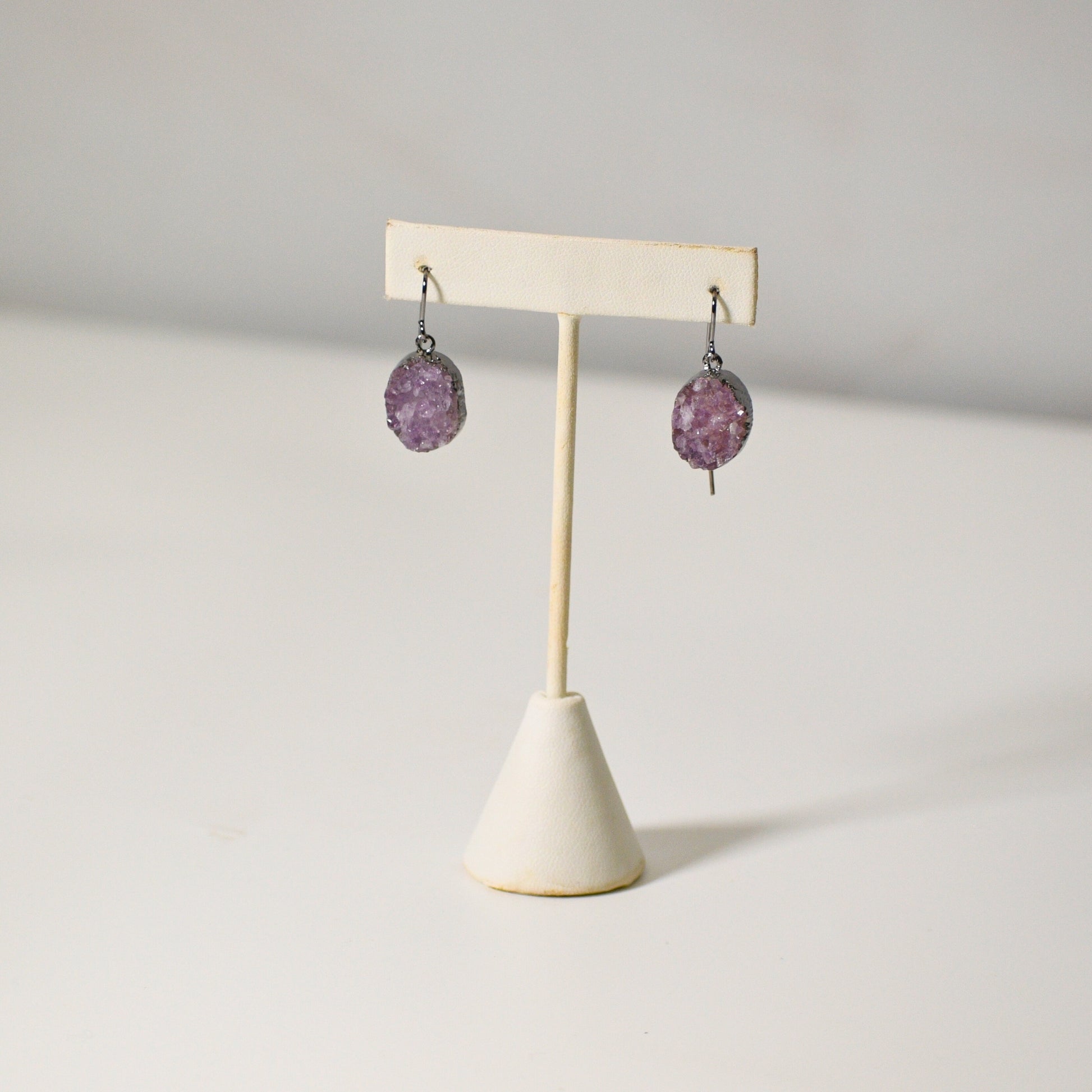 Materials – Druzy Amethyst; 18K Gold-Plated or Titanium - over Brass (no flash dipping); Hook backing